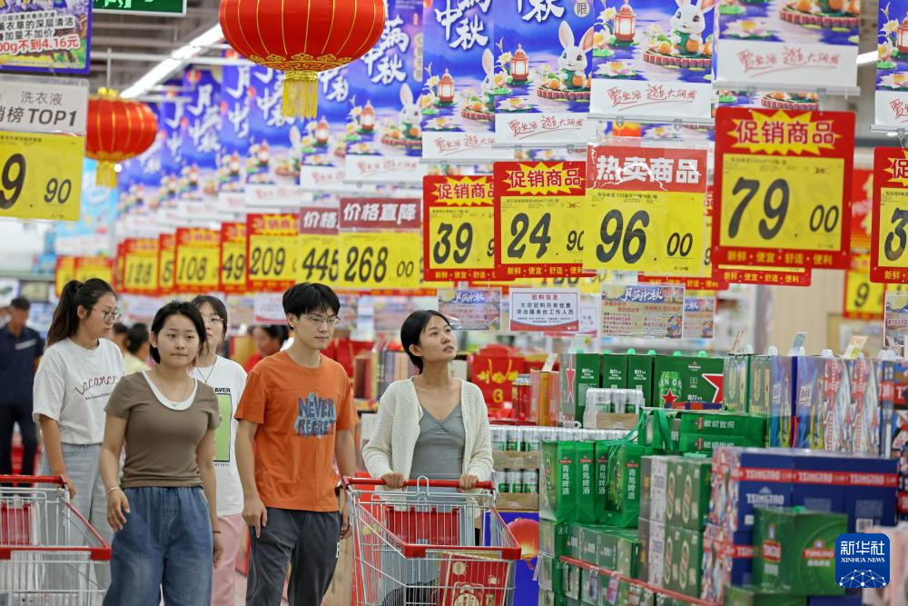 9月9日,顾客在江苏省连云港市海州区一家超市选购消费品。新华社发(耿玉和摄)