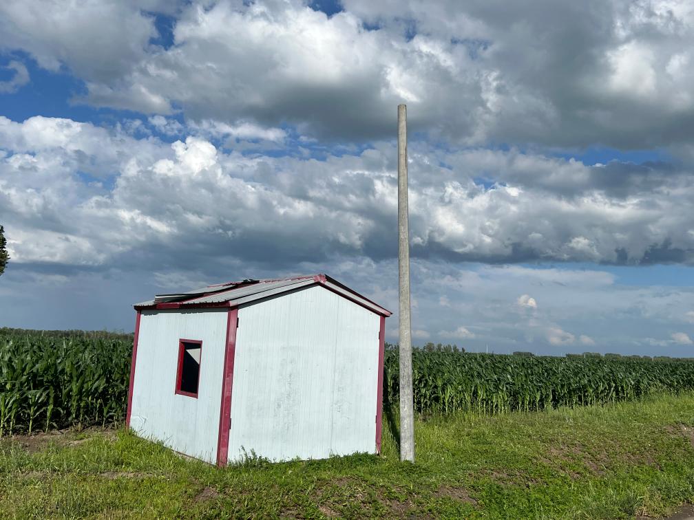 林甸县一处保护水源井的铁皮房出现破损,未见配套设备。新华社记者董宝森摄