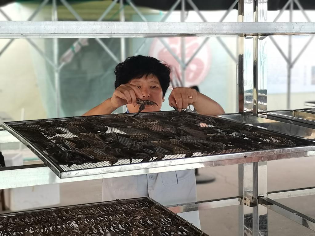威海银泽生物科技股份有限公司的工人正在晾晒海马干。新华社发(陶相银 摄)