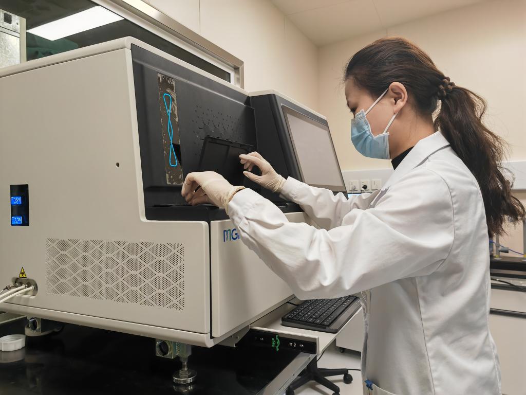 甘肃省妇幼保健院(甘肃省中心医院)技术人员正在进行二代基因测序。新华社记者梁军 摄