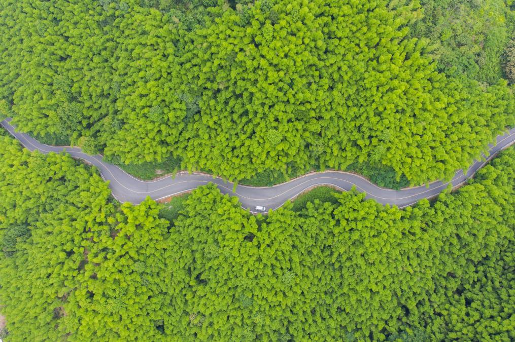 在浙江省诸暨市赵家镇上京村拍摄的改造提升后的县道(2024年6月4日摄,无人机照片)。新华社记者 徐昱 摄