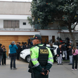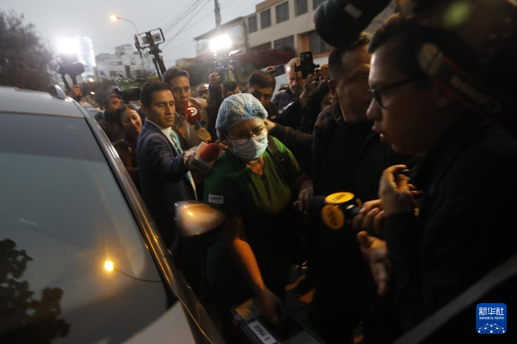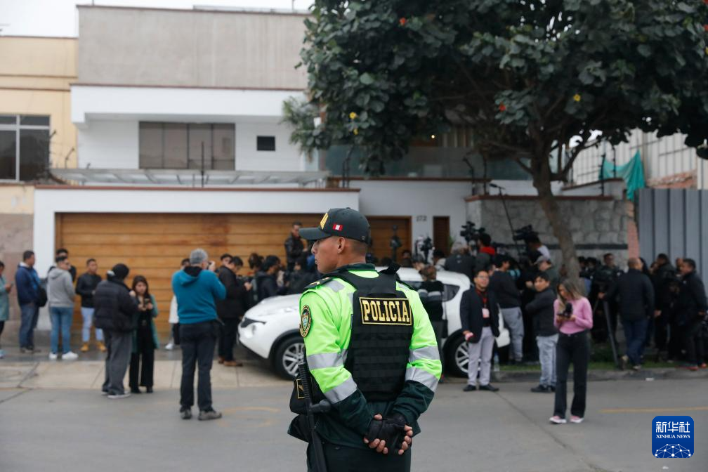 9月11日,在秘鲁利马,警察在前总统阿尔韦托·藤森的住所外警戒。新华社发(玛利亚娜·巴索摄)