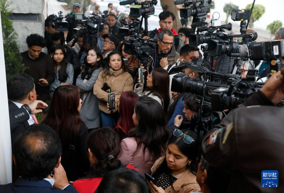 9月11日,在秘鲁利马,媒体记者聚集在前总统阿尔韦托·藤森的住所外。新华社发(玛利亚娜·巴索摄)