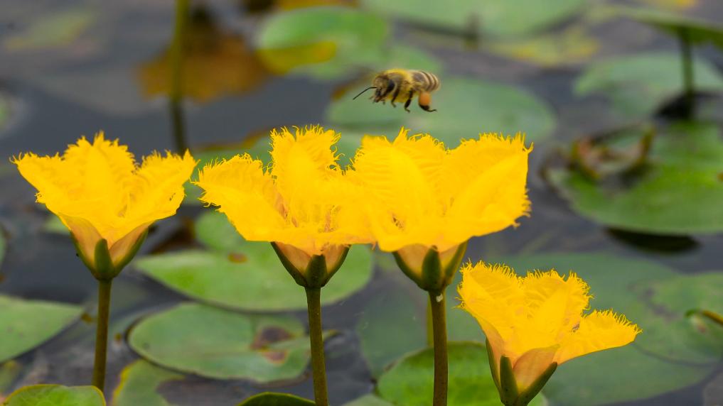 《诗经》曾用“参差荇菜,左右采之”来描绘古人采摘荇菜的场景。这种植物的绿叶紧贴水面,金黄色小花亭亭立出水上,从五月到十月都是观赏的好时节。它对生长环境的水质有极高的要求,因此被誉为“水镜草”。