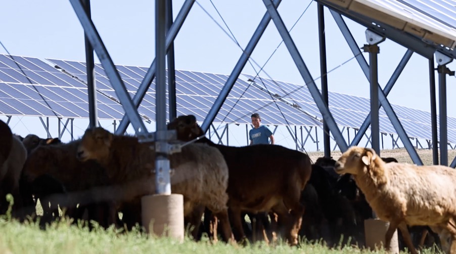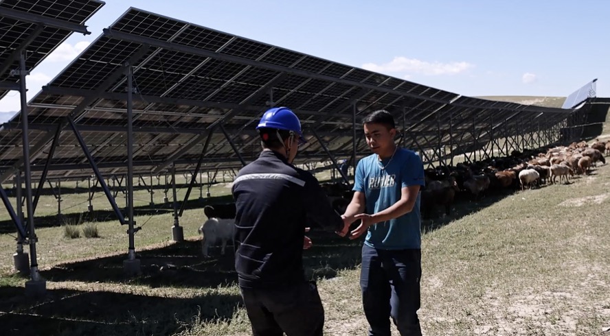 而担心项目建设会让原本贫瘠的土地雪上加霜的牧民,也收获到了意外的惊喜。别格尔斯孜·江阿尔生看到在光伏板下巡检的李旭龙会亲切地握手问好,光伏板下长势喜人的牧草,和扭着肥硕的身躯穿行于光伏板间的肥羊让他喜笑颜开。