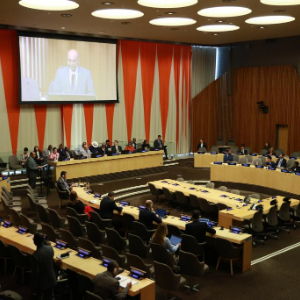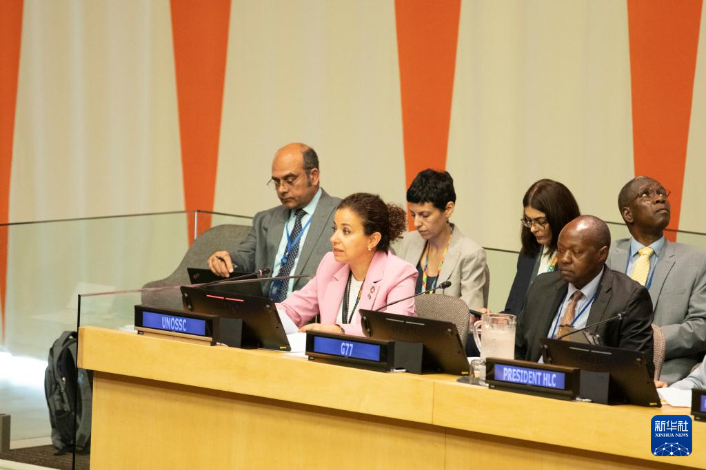 9月12日,在位于纽约的联合国总部,联合国南南合作办公室主任迪玛·哈提卜(前排左)在联合国南南合作日高级别讨论会上致辞。新华社记者 谢锷 摄