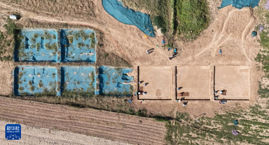 9月11日拍摄的八里桥遗址发掘现场(无人机照片)。新华社记者 袁月明 摄