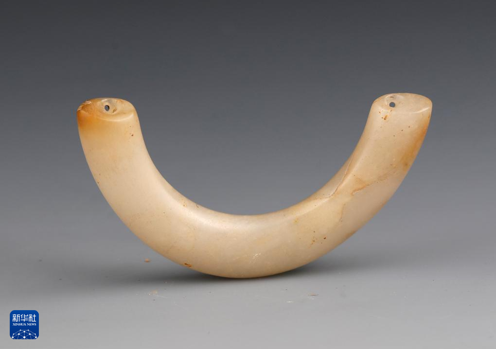 江苏兴化草堰港遗址出土的玉璜(资料照片)。新华社发(国家文物局供图)