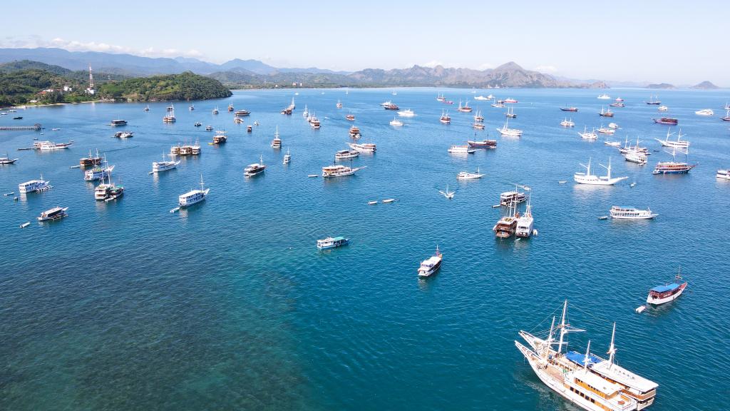 这是2023年5月12日拍摄的印度尼西亚拉布安巴焦海滨风光(无人机照片)。拉布安巴焦是位于印度尼西亚东努沙登加拉省的旅游小城,这里清澈的海水、散落的小岛、绵延的山川等丰富的自然景观和当地特色的人文景象吸引着游客的目光。新华社记者徐钦摄