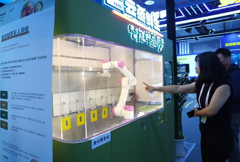9月12日,在2024全球工业互联网大会创新成果展上,参展商向参观者介绍智能鲜蒸无人厨房。新华社记者 章磊 摄