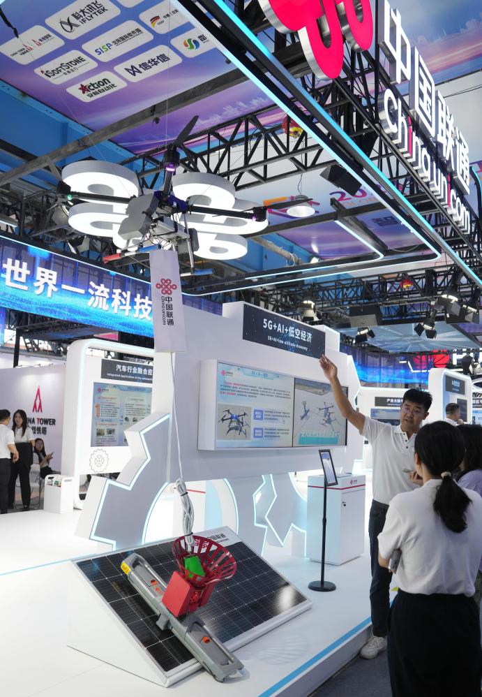 9月12日,在2024全球工业互联网大会创新成果展上,参展商向参观者介绍无人机光伏板清洁机器人。新华社记者 章磊 摄