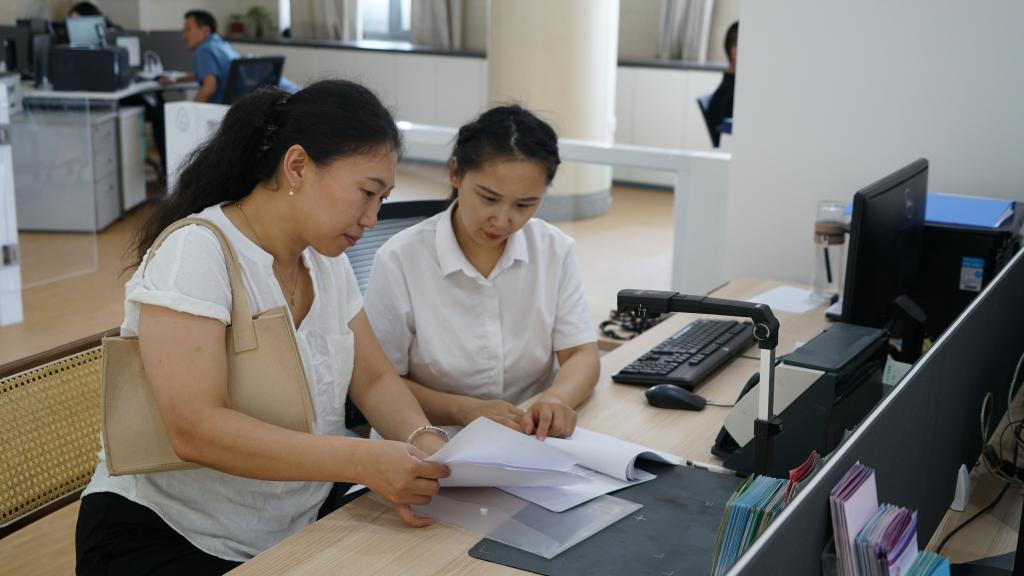 邯郸市市民服务大厅工作人员与办事群众“肩并肩”办理业务。(受访者供图)