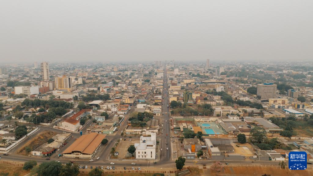 这是9月12日在巴西朗多尼亚州波多韦柳拍摄的被烟雾笼罩的城市建筑和街道(无人机照片)。新华社记者 王天聪 摄