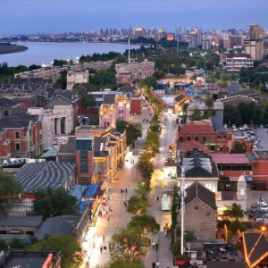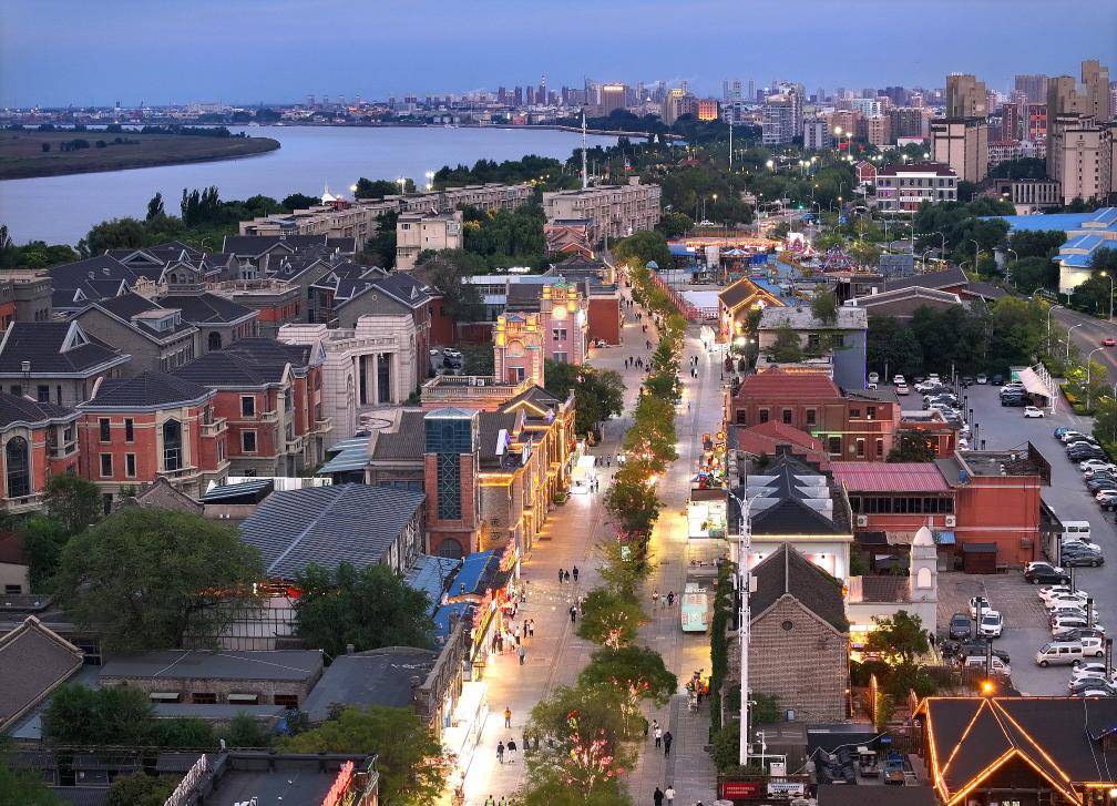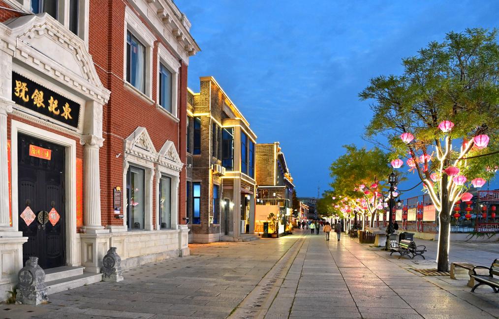 这是傍晚时分的营口辽河老街(9月14日摄)。