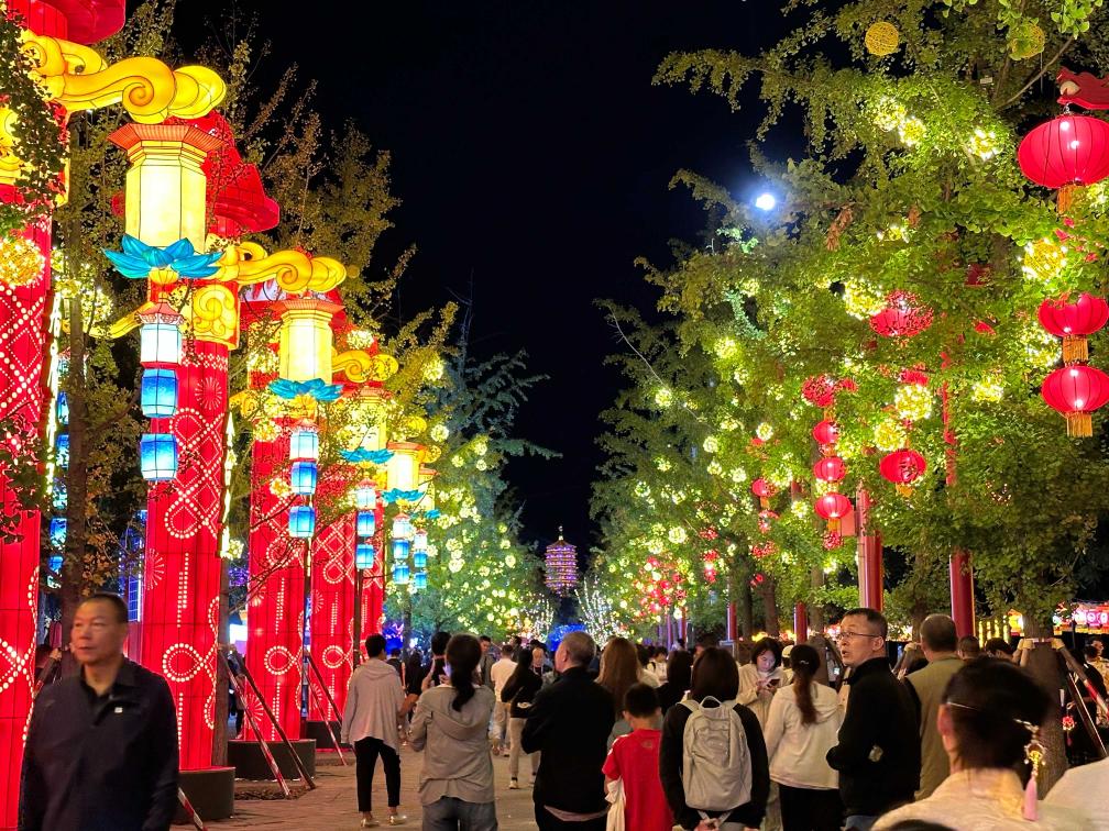 在位于丰台区的北京园博园,正在举办的“京彩灯会”——2024年北京中秋国庆彩灯游园会让市民游客沉浸在“花市灯如昼”的世界。《花团锦簇》灯组再现长城脚下壮丽景色,《北京风物》灯组精细描绘老北京美食与茶文化……灯会创新融合自贡灯会与北京文化,设置九大主题展区,展出200余组彩灯、10万件彩灯挂件,在展出周期、灯会规模、灯组规格设计等方面,均开创了北京灯会历史之最。