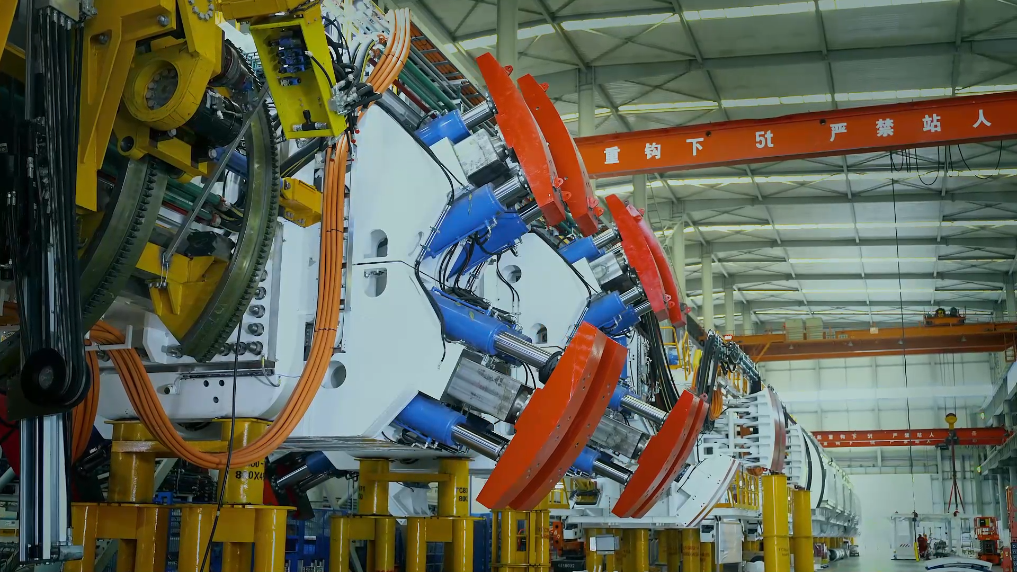 “永宁号”是为国网新源河南洛宁抽水蓄能电站定制的国产首台大直径大倾角斜井硬岩掘进机,长121米,自重1550吨,刀盘直径7.23米,由一万多个零部件组成,掘进速度约是同类工程传统施工方式的6倍。