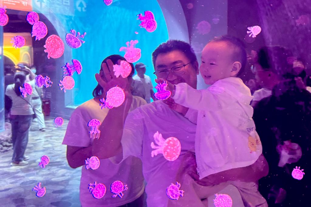 游客在哈尔滨极地公园内观赏水母。新华社记者 杨思琪 摄