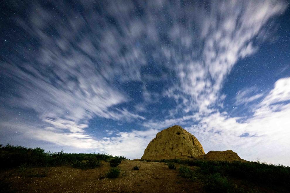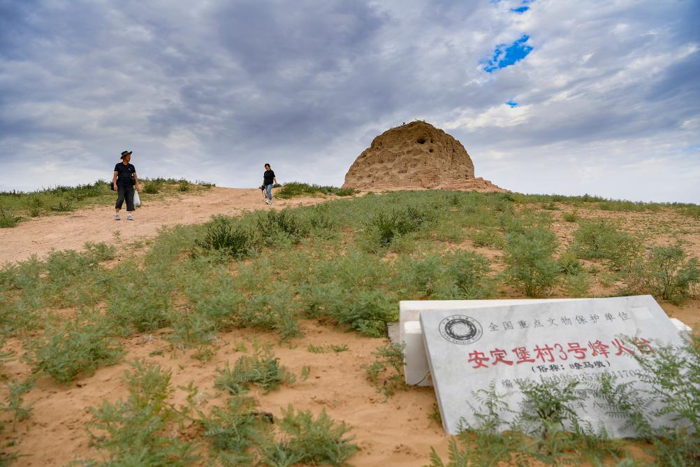 这是2023年8月18日拍摄的宁夏盐池县瞭马墩烽火台。