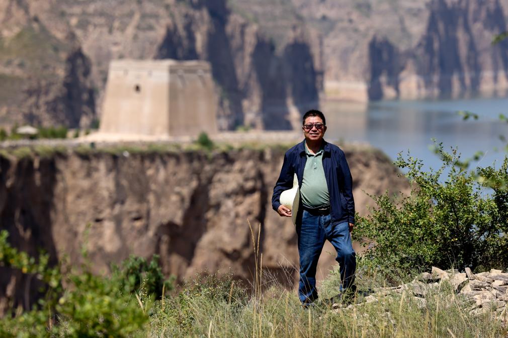 吕成贵在山西省偏关县老牛湾村留影(2023年8月29日摄)。