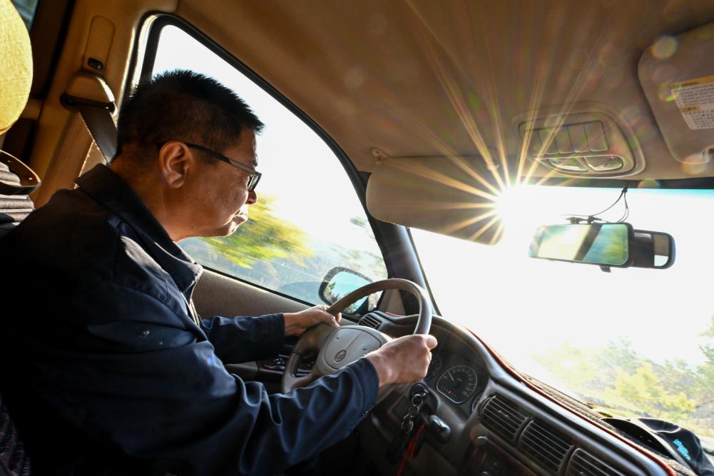吕成贵开车前往位于偏关县的滑石涧堡考察寻访(2023年8月29日摄)。