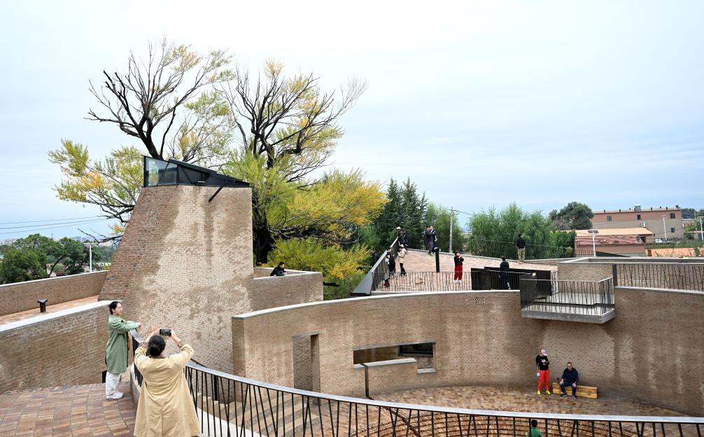 9月16日,市民在内蒙古自治区呼和浩特市回民区攸攸板镇西乌素图村“回”空间艺术中心参观游玩。新华社记者贝赫 摄