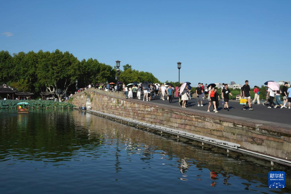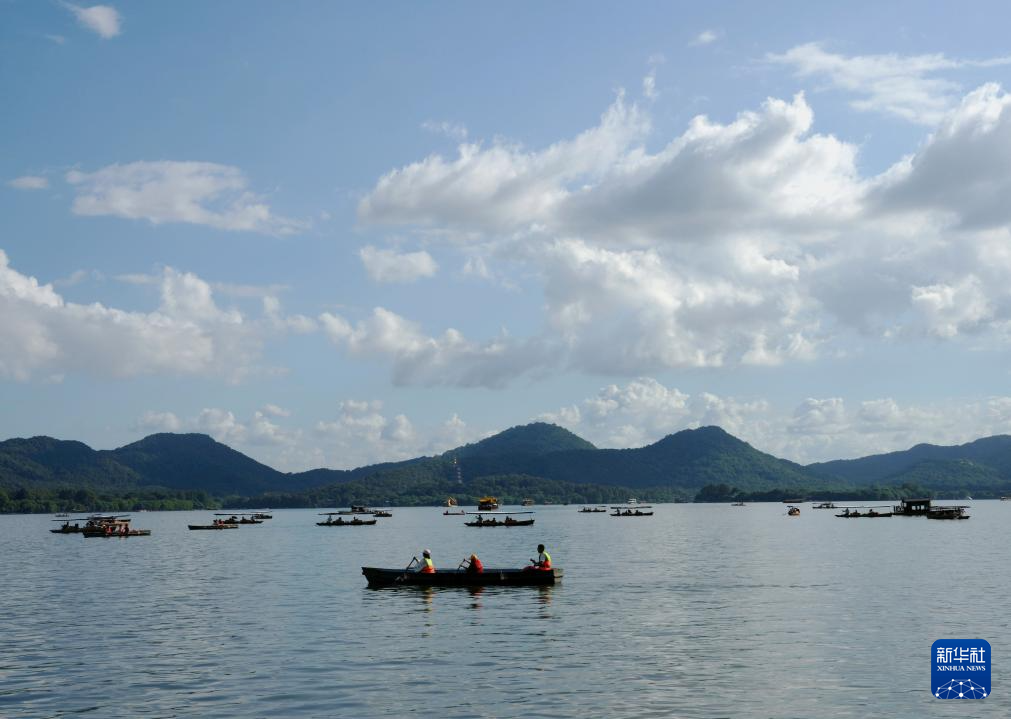 9月17日,游客在江苏扬州瘦西湖风景区游玩(无人机照片)。