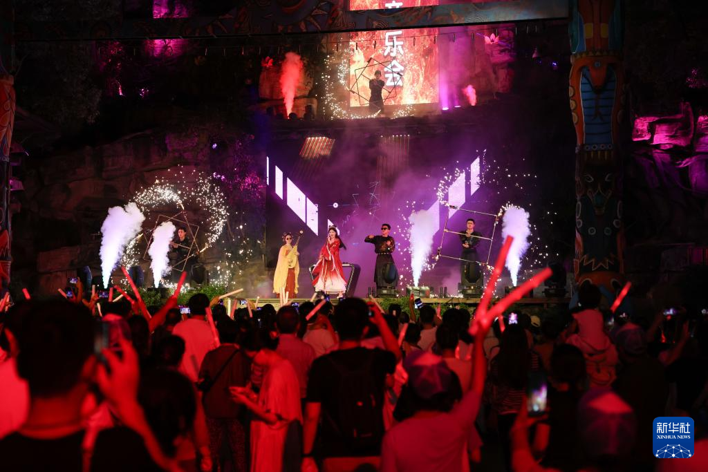 9月17日,游客在杭州宋城景区观看音乐会表演。