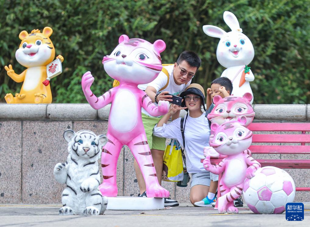 9月17日,在山东省荣成市西霞口神雕山野生动物世界,游客在打卡、拍照。
