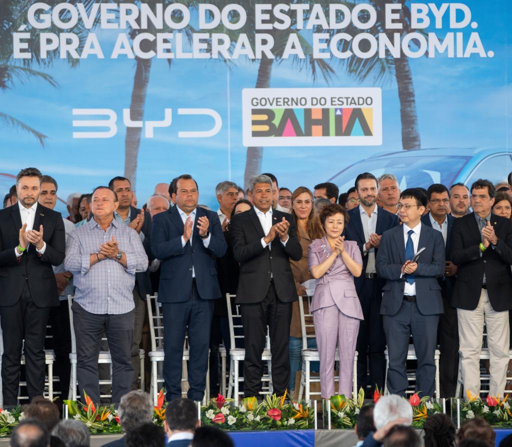 2023年7月4日,中国车企比亚迪在巴西东北部城市萨尔瓦多宣布,将在附近卡马萨里市建设由三个工厂组成的大型生产基地综合体。新华社记者王天聪摄