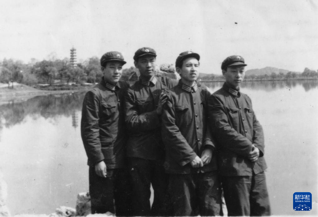 1962年,王小谟(左二)参军分配后和战友合影(资料照片)。新华社发(中国电子科技集团有限公司电子科学研究院供图)