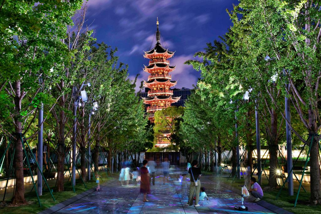 上海市徐汇区龙华广场亮灯,“唐韵中秋”活动举行。新华社发(王子明摄)