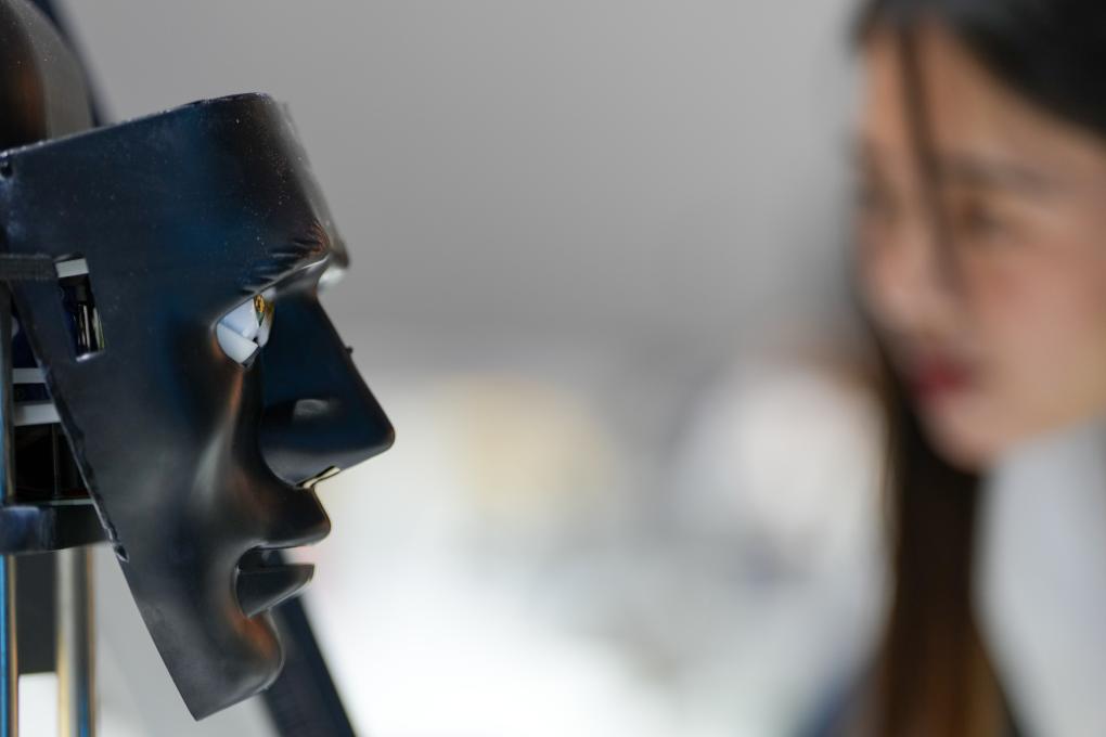 9月12日,一款智能机器人在服贸会国家会议中心会场向观众“比心”。新华社记者 邹广萍 摄