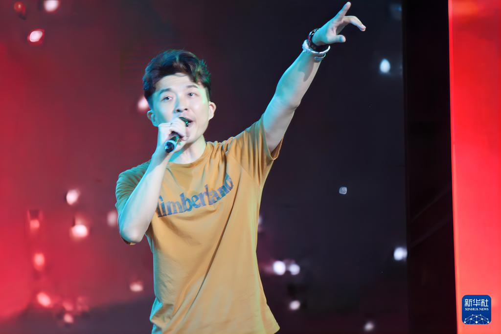 客家青年朱鹏钧在海峡客家中秋文艺晚会上献唱(9月5日摄)。新华社发