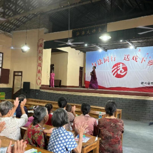 舞台下,长板凳上坐满了来看戏的村民,“回去一定要叮嘱我儿子喝酒千万不要开车。”76岁的村民郭余秀说,“村里经常举行小品、戏剧等演出活动,她基本场场不落。演出不仅好看,还非常实用,学到了不少法律知识。”