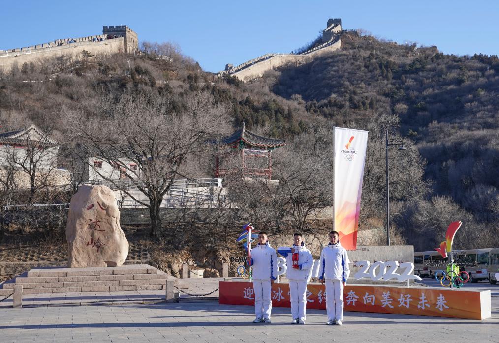 2022年2月3日,北京冬奥会火炬在八达岭长城传递。 新华社记者 张豪夫 摄