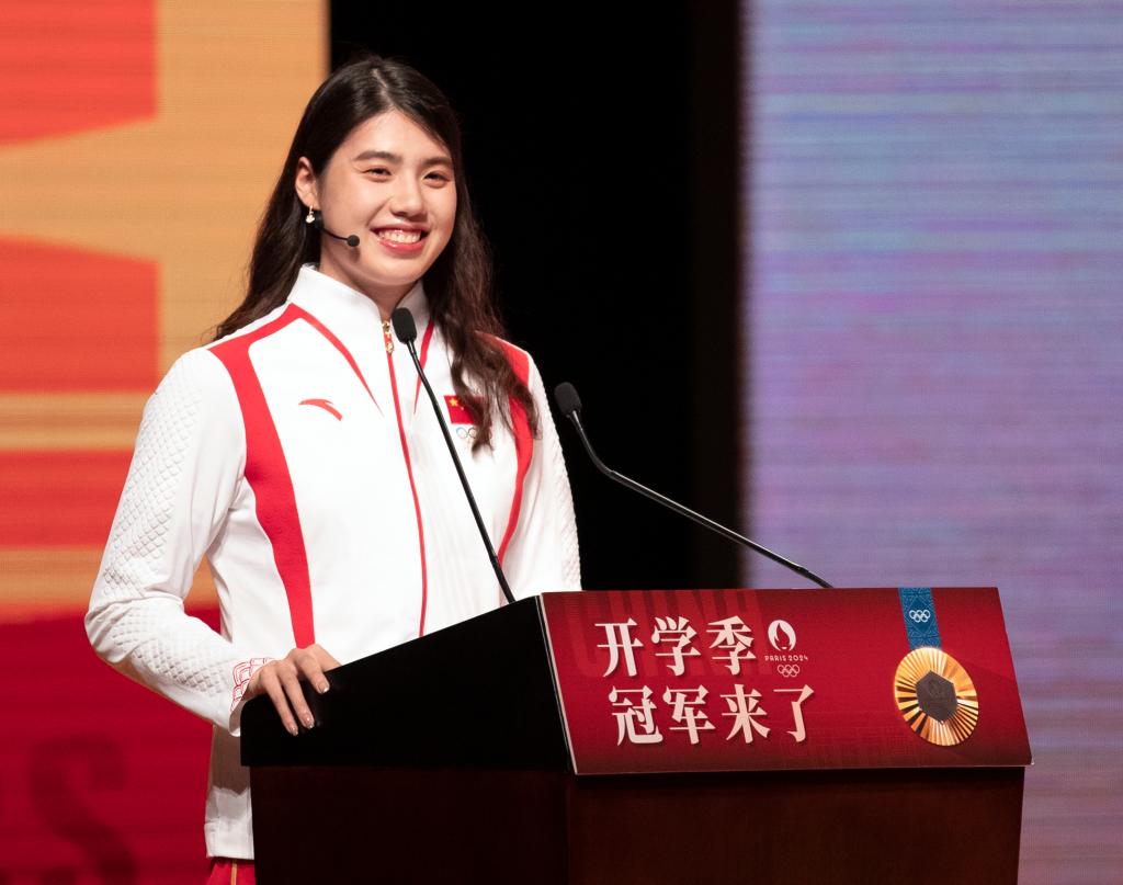 9月19日,张雨霏在“冠军讲堂”发言。新华社记者 雒圆 摄