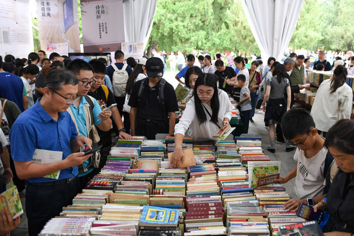 2024年9月15日,人们在“我与地坛”北京书市上选购旧书。新华社记者 陈钟昊 摄