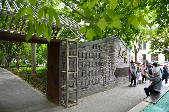 2024年5月1日,人们在位于北京东四南大街和史家胡同路口处的“微花园”参观游览。新华社记者 鞠焕宗 摄