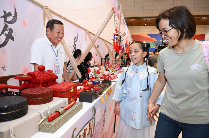 2024年8月7日,人们在中国工艺美术馆(中国非物质文化遗产馆)举办的非遗市集上参观。新华社记者 李贺 摄