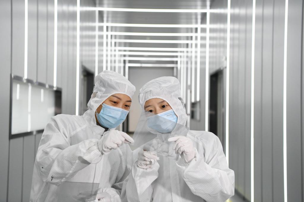 2月21日,在位于安徽合肥的东超科技工厂,技术人员在检查负折射平板透镜原材料的品质。新华社记者 张端 摄