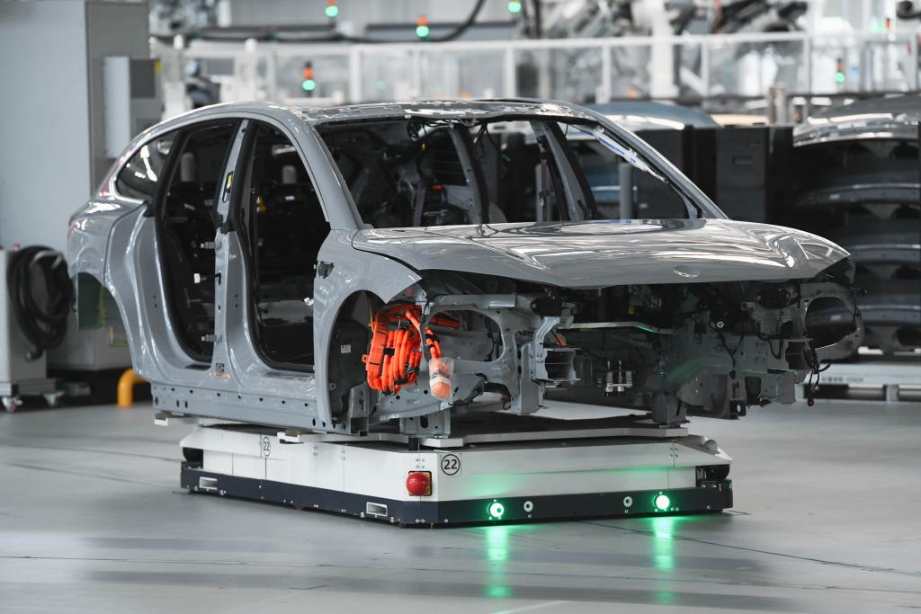 这是在安徽省合肥市新桥智能电动汽车产业园蔚来第二工厂拍摄的新能源汽车生产线(2024年5月9日摄)。新华社记者 张端 摄