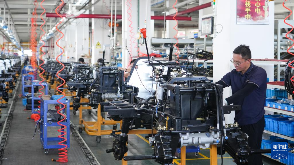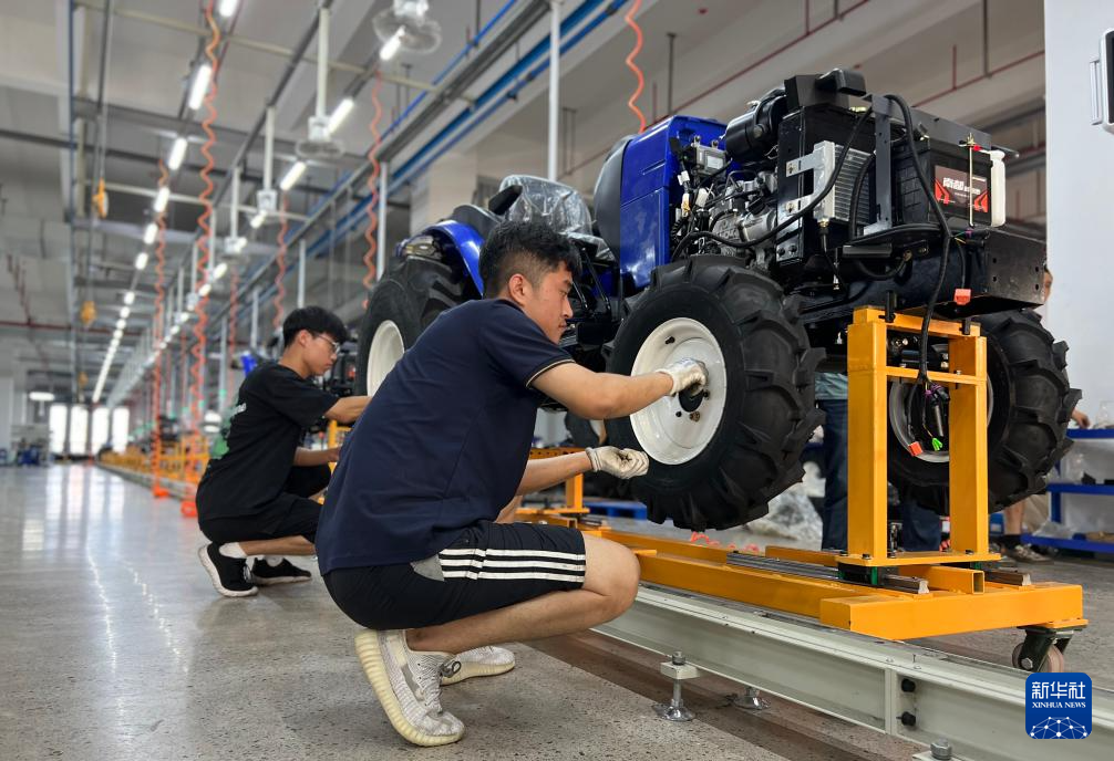 在星月集团新扩建的厂房,工人在装配农用拖拉机(8月15日摄)。新华社记者 唐弢 摄