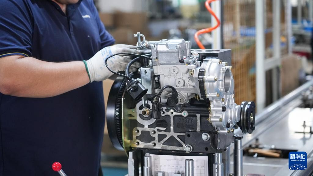 工人在装配星月集团自主研发的插秧机发动机(8月15日摄)。新华社记者 唐弢 摄