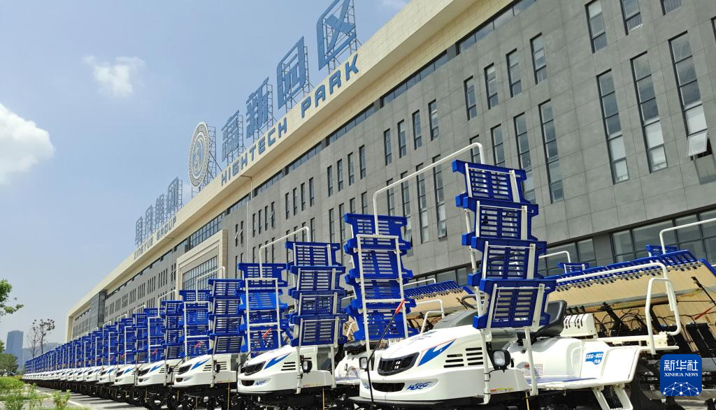 星月集团园区内整装待发的插秧机(资料照片)。新华社发(星月集团供图)