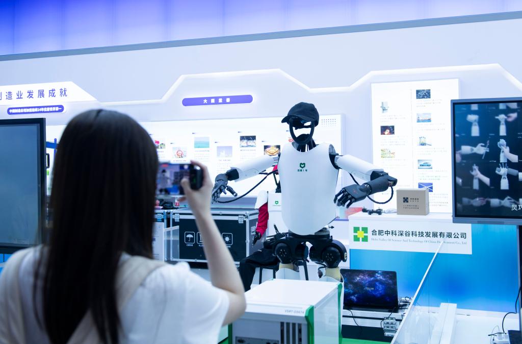 9月20日,观众在2024世界制造业大会展馆内了解“田螺1号”人形机器人。新华社记者 傅天 摄