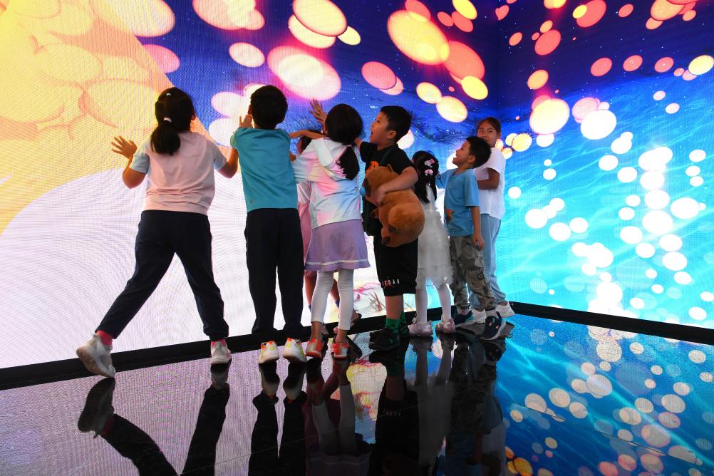 9月16日,在服贸会首钢园文旅服务专题展区,孩子们在体验数字IP作品。新华社记者 逯阳 摄