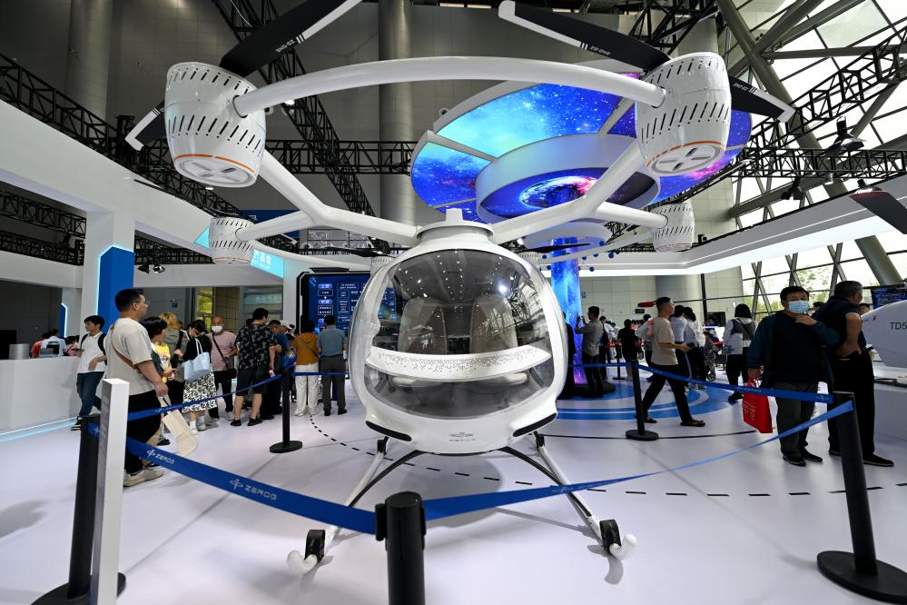 走进低空体验区,亿航智能公司参展的无人驾驶载人航空器位于中央位置,吸引一众目光。亿航智能工作人员告诉记者,已在公园内筹备了“空中游览”“科普研学”等多个低空应用场景,未来实现“打飞的”通勤不再遥不可及。