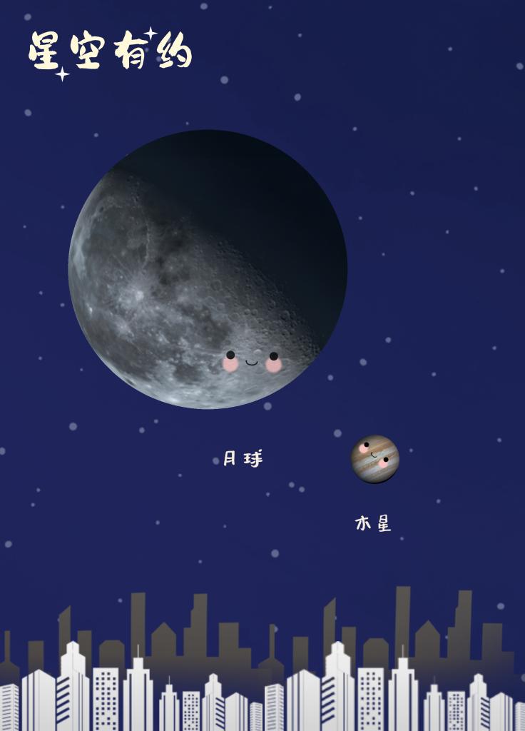在与木星相合后,25日晚月球还会运行至火星附近,并与火星相合,感兴趣的公众也可以观赏,但视觉效果不如本次木星合月。