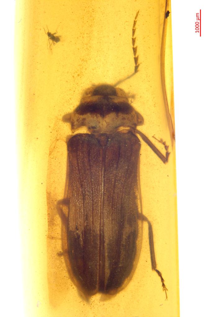 领导此项研究的中国科学院南古所研究员蔡晨阳向记者介绍,这枚新发现的萤火虫化石保存在约1亿年前的白垩纪中期缅甸琥珀中,代表了萤科动物的一个新属种,研究团队将其命名为何海坤弗拉马里翁熠萤。