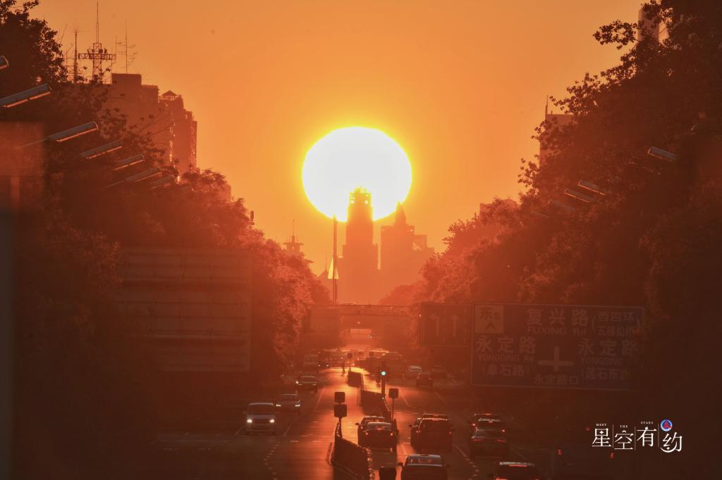 星空摄影师王俊峰9月22日在北京长安街拍摄的旭日“悬日”。(星联CSVA供图)